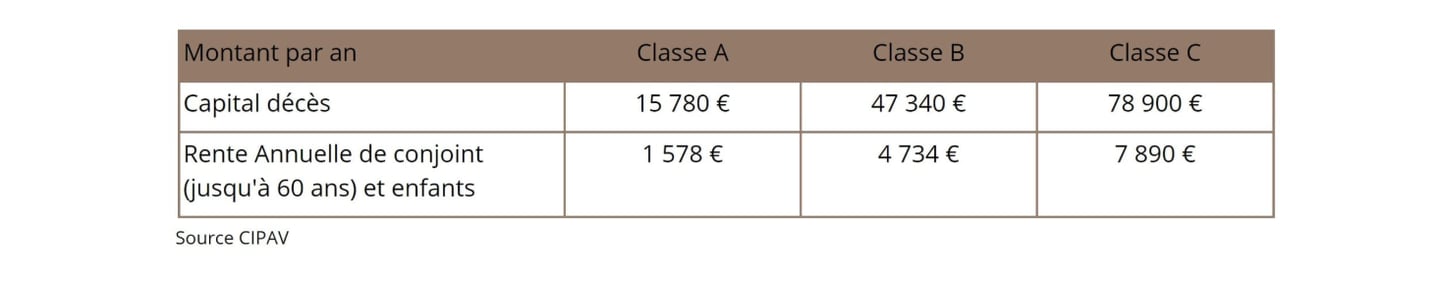 A décès de l'assuré, la CIPAV verse :